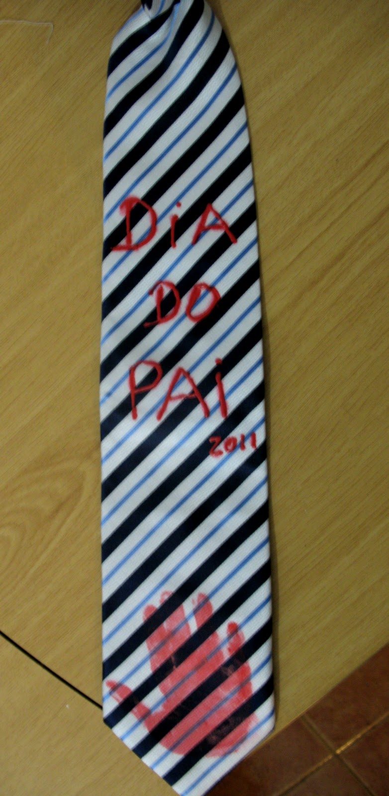 Fizeram para o papá na creche esta gravatinha, que ele usou todo vaidoso por alguns minutos! ;)